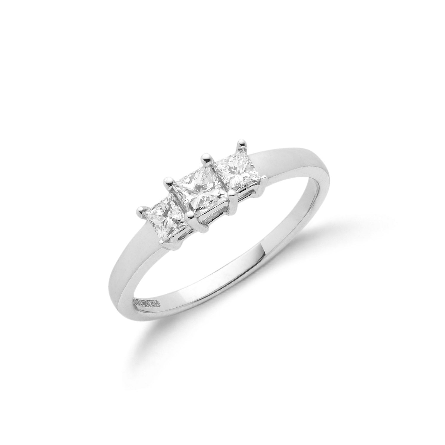 18ct White Gold 0.50ct Princess Cut Diamond Trilogy Ring