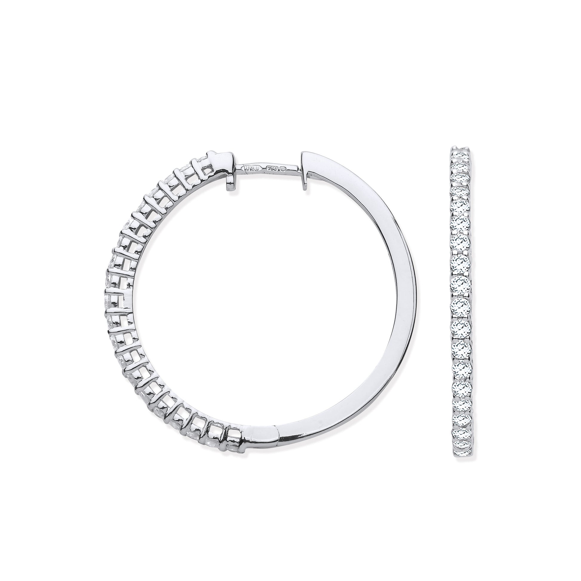 18ct White Gold 0.70ct Claw Set Diamond Hinged Hoop Earrings