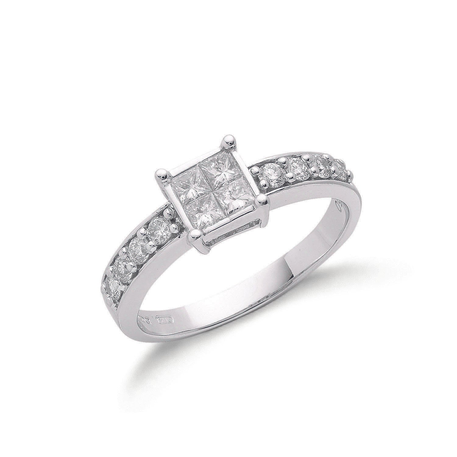18ct White Gold 0.75ct 4 Stone Centre Princess Cut Diamond Engagement Ring