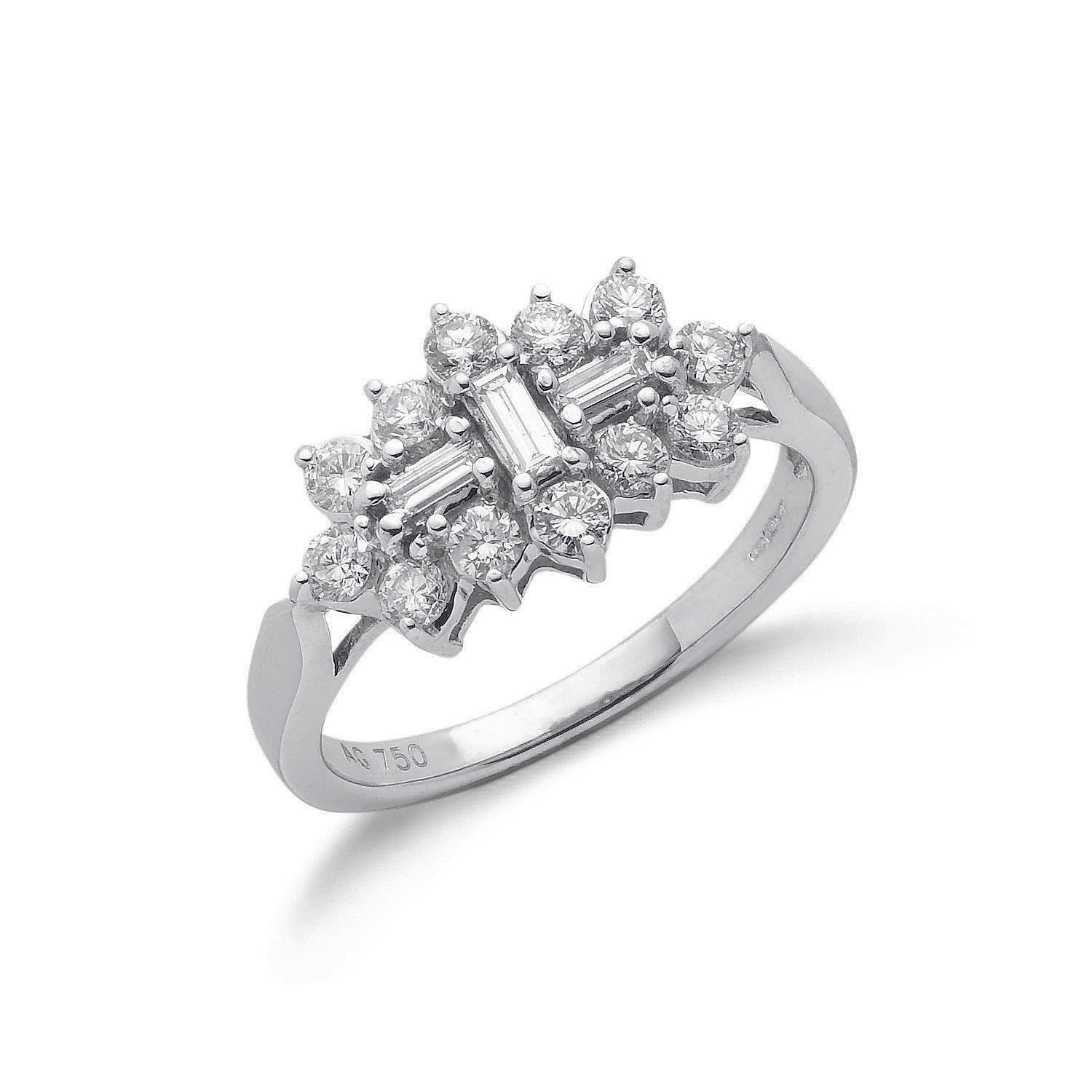 18ct White Gold D.1.00ct White Diamond Boat/Cluster Ring