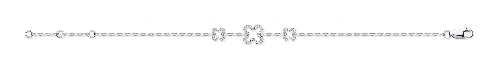 9ct White Gold Four Leaf Clover 0.11ct White Diamond Bracelet