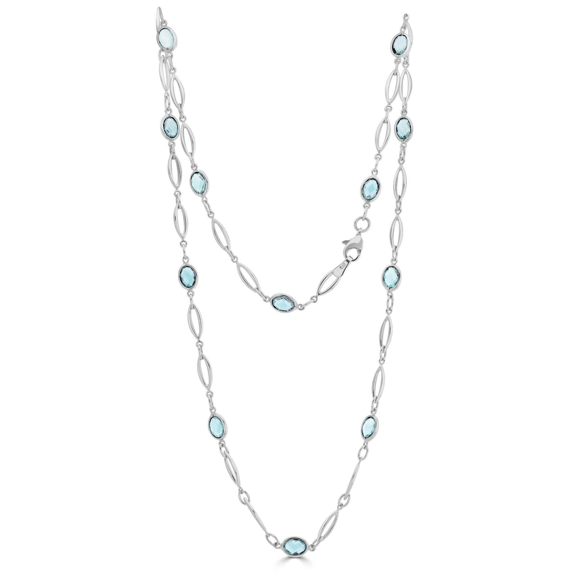 9ct White Gold Spec Set Oval Blue Topaz & Gold Open Marquise Motifs Necklace