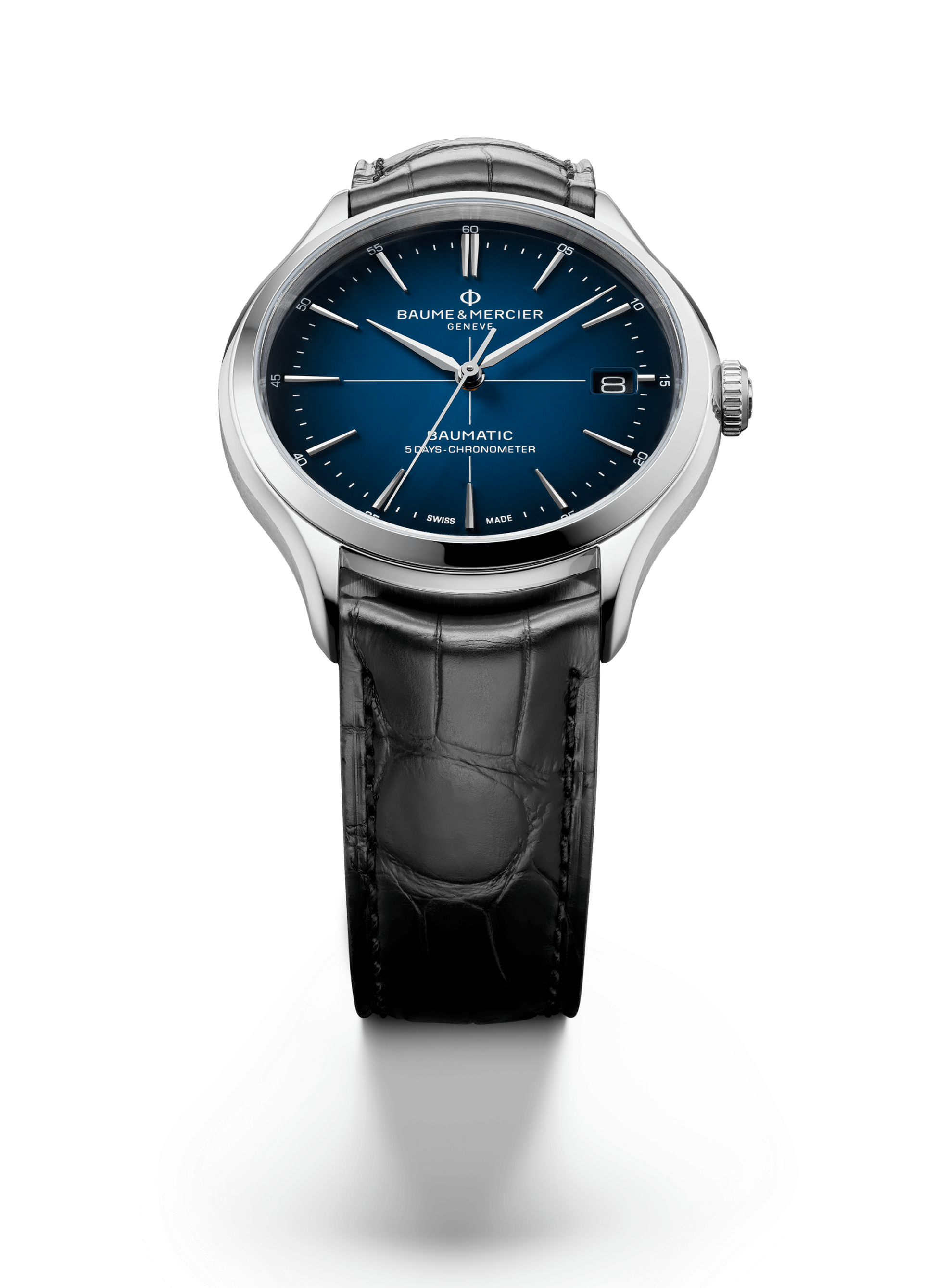 A Swiss chronometer watch for men, the Clifton Baumatic 10467 and its manufacture automatic calibre Baumatic is a fitting timepiece for the modern individual. It features a gradient blue dial paired with a satin-finished stainless steel case and a finely-stitched black alligator strap.
