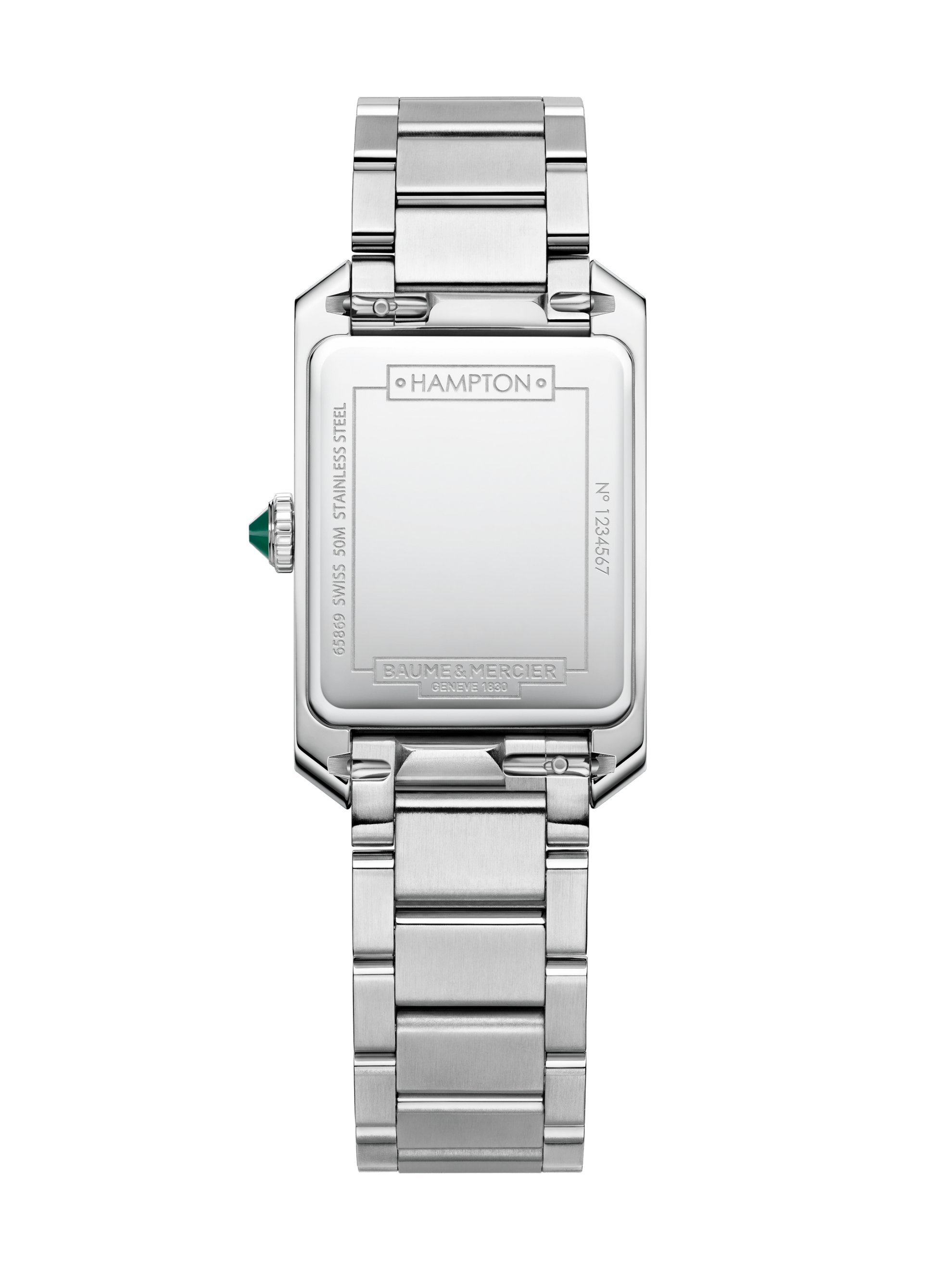 A diamond-set steel and rectangular watch for women, the Hampton 10631 comes with a quartz movement and is delivered on a steel bracelet. Fine, feminine and graceful.