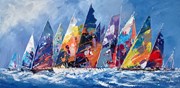 Bernard combines impressionism and abstraction to create vivid, painterly seascapes in which the illusion of form is created with colour, stroke, and texture rather than of line. In his distinctive signature style, he sets the scene with a swirling blue background of sea and sky, painted with open, spontaneous brushwork reminiscent of the early impressionists. The boats which dominate the foreground however are semi-abstract, depicted as jewel-like mosaics of ochre, magenta and the palest green and making the entire canvas resonate with light, energy and joie de vivre.. Bernard was born in Alicante in 1964. Growing up he spent much his spare time at the family studio with his father and sister, both of whom were professional artists and sailing at every opportunity.